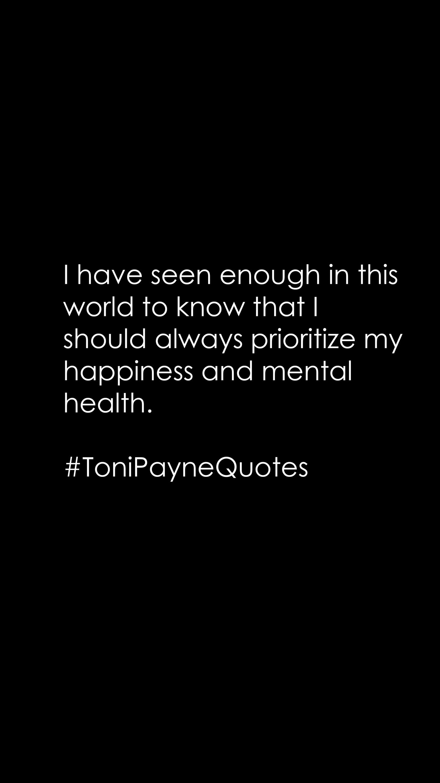 Today’s Quote – I have seen enough in this world to know that I should always prioritize my happiness and mental health. #tonipaynequotes