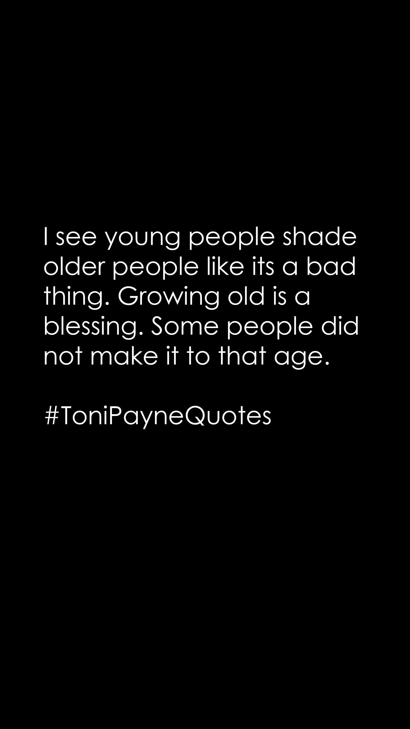 Today’s Quote is a quote about getting older. Growing old is a blessing #tonipaynequotes