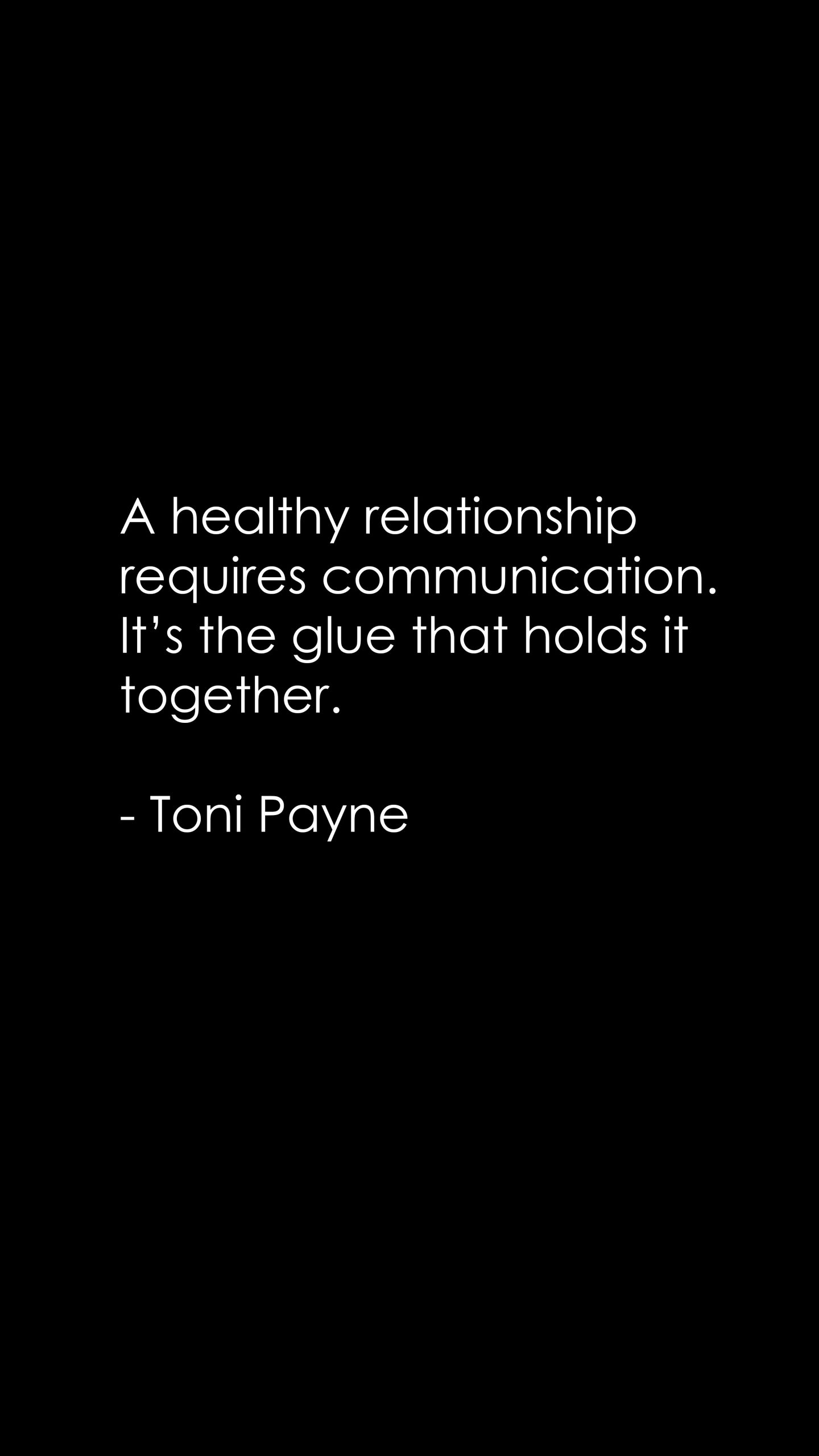 Toni Payne Quote About Communication in a relationship.A healthy relationship requires communication.It’s the glue that holds it together.– Toni Payne