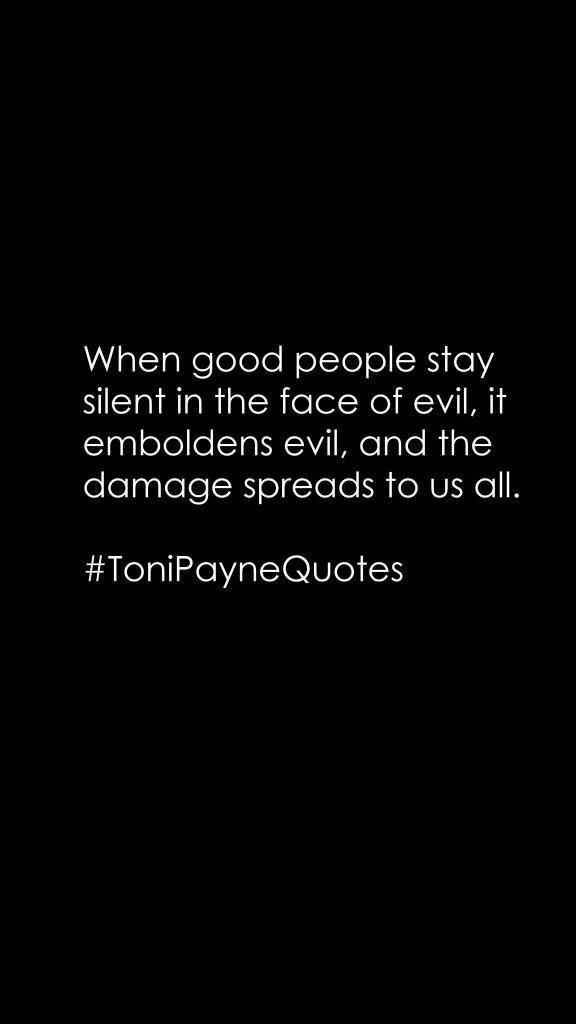 Today’s Quote is about evil people doing evil things and the importance of speaking up against it – When good people stay silent in the face of evil, it emboldens evil, and the damage spreads to us all.