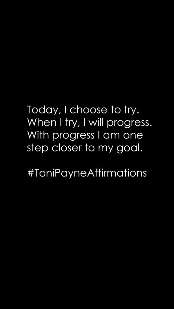Todays #wordofaffirmation – Today, I choose to try. When I try, I will progress. With progress I am one step closer to my goal. #ToniPayneAffirmations